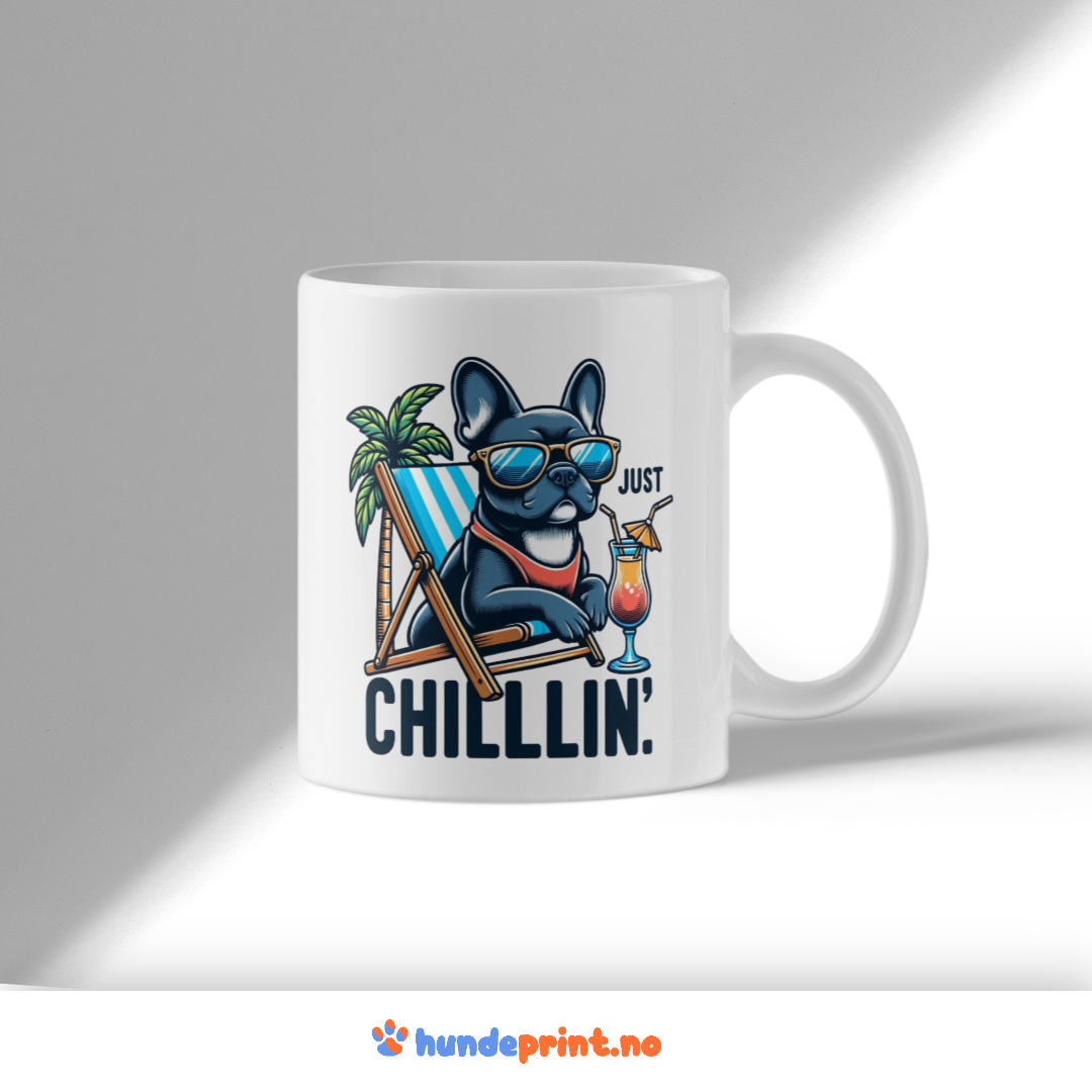 Kaffekrus med premium grafikk – fransk bulldog – Just chilllin!